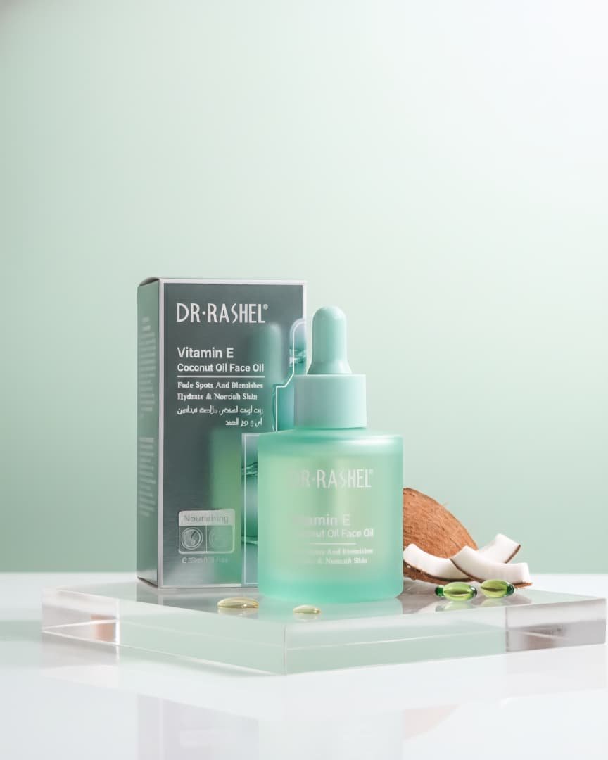 / Aceite facial nutritivo con vitamina E y aceite de coco de la marca Dr. Rashel.