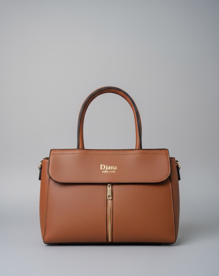 Bolso de mano de color marrón con cremallera frontal central y asas superiores es un accesorio elegante y versátil.Bolso de mano de color marrón con cremallera frontal central y asas superiores es un accesorio elegante y versátil.