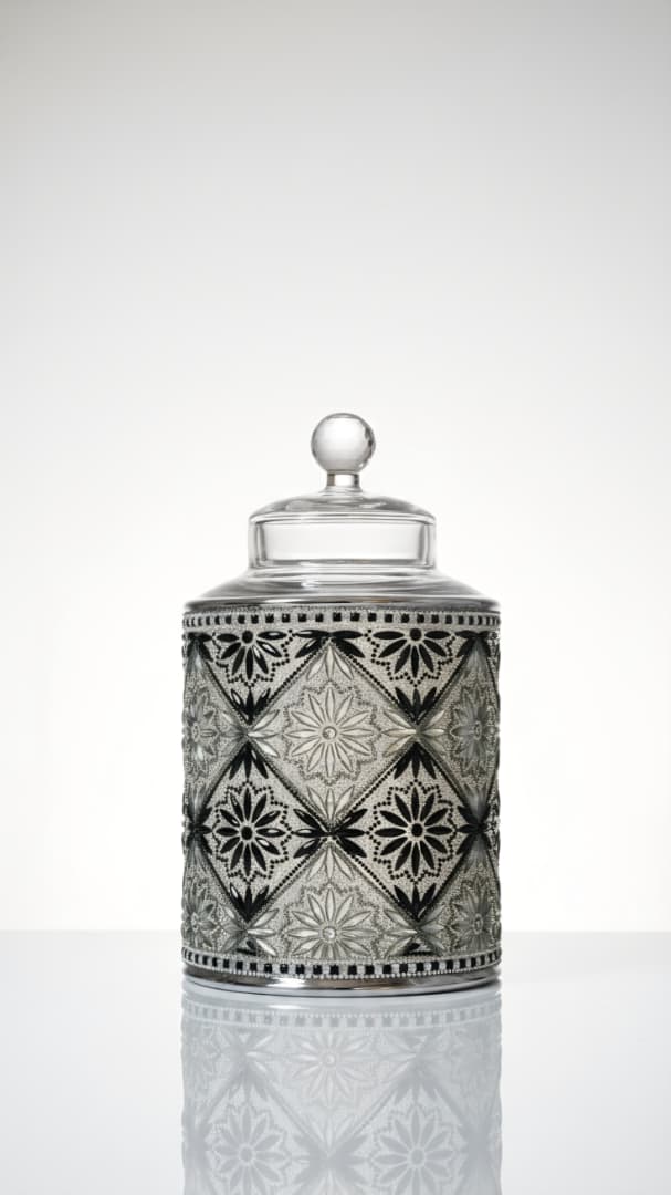 Caja decorativa de cristal de color plateado y negroCaja decorativa de cristal de color plateado y negro