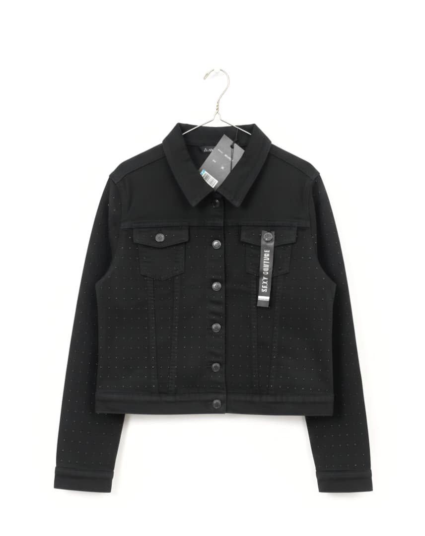 / Chaqueta vaquera negra, decorada con pedrería o diamantes de imitación