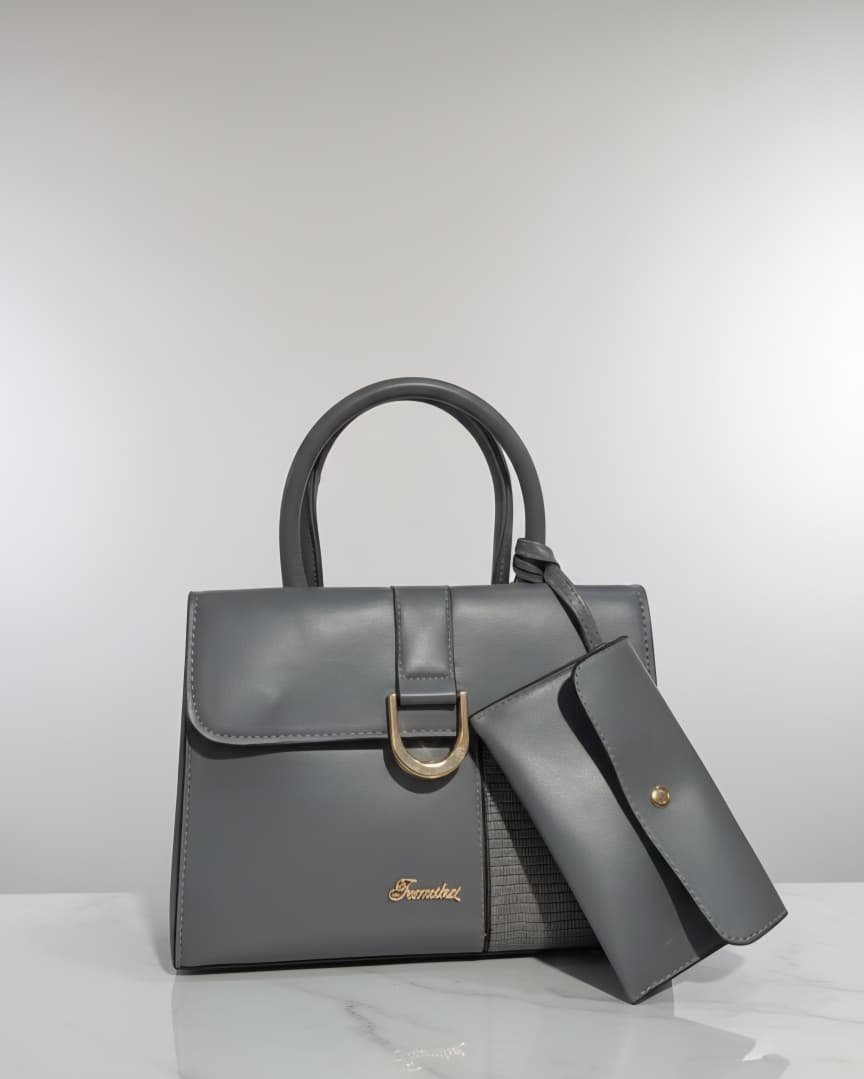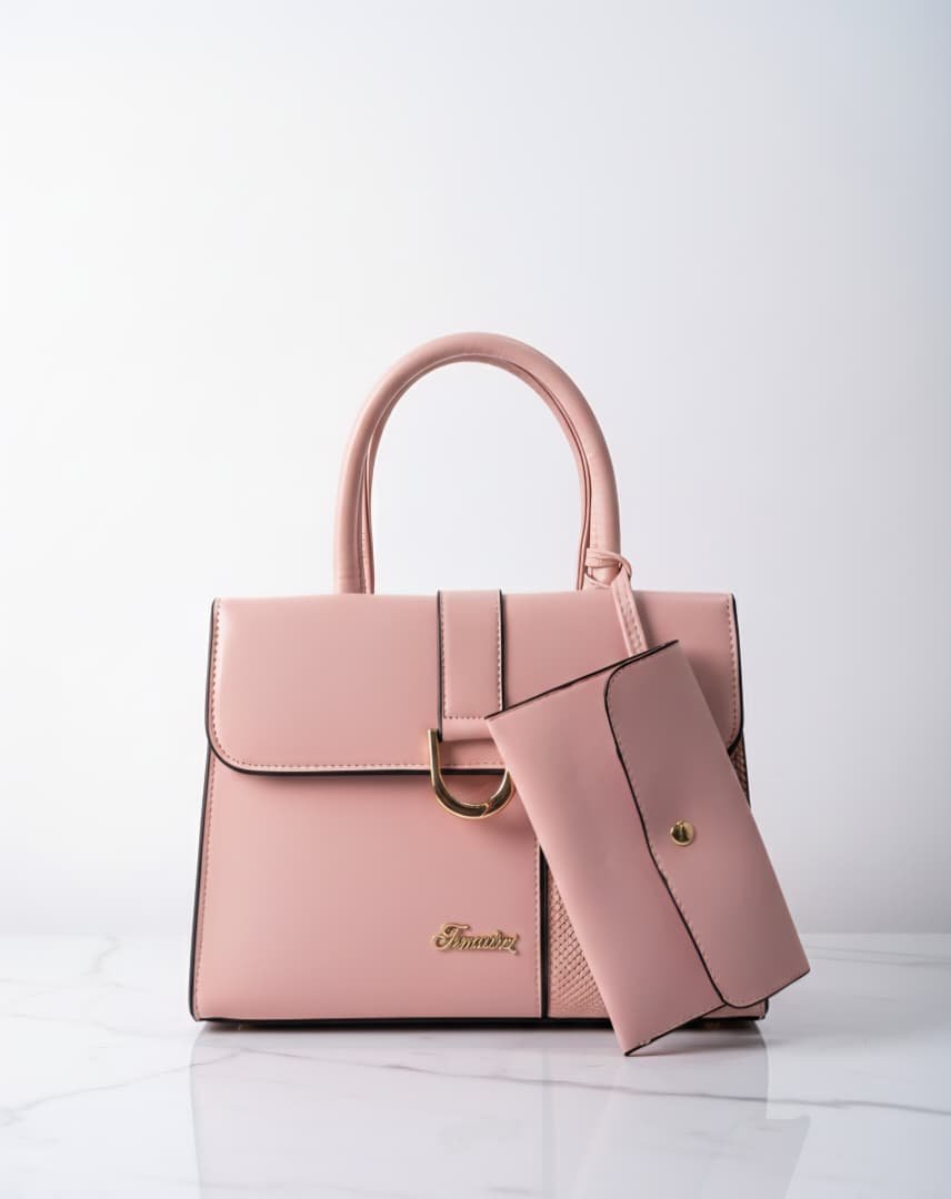 Conjunto de bolso de mano tipo satchel y billetera a juego.