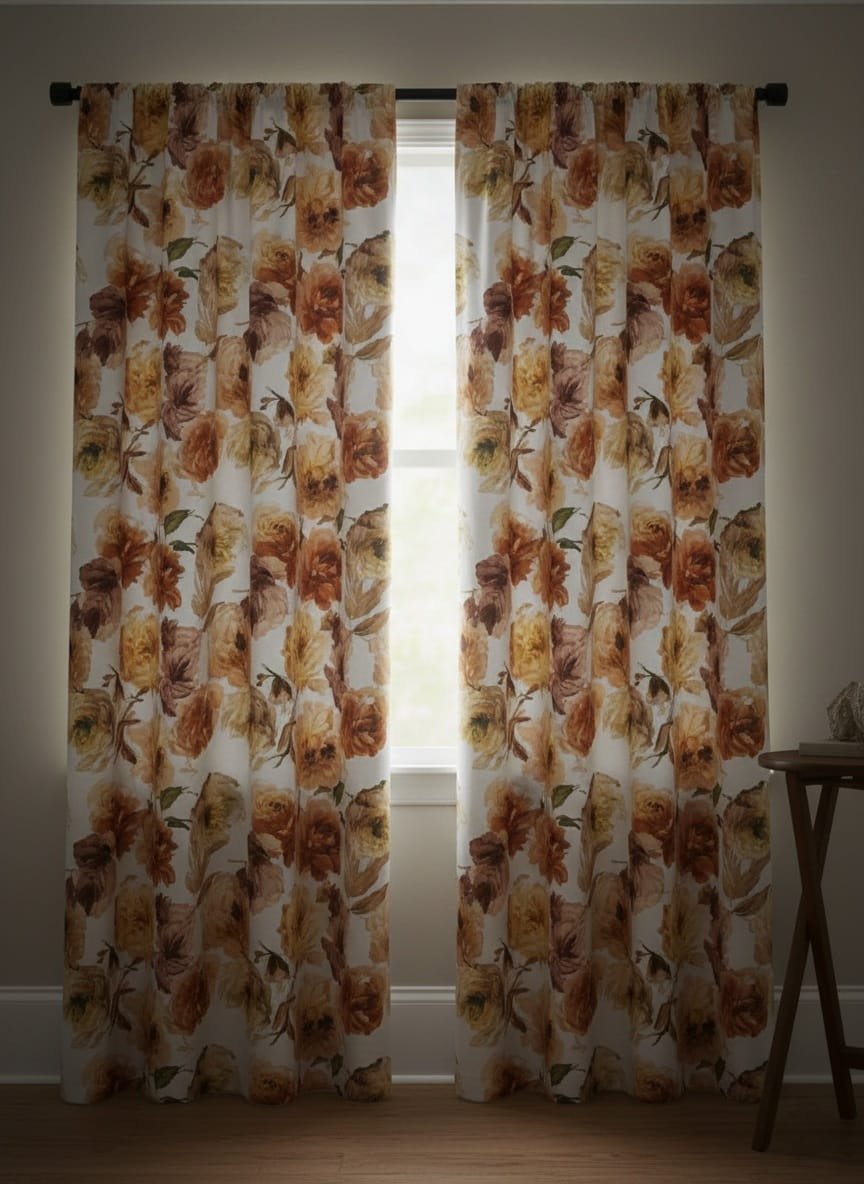 / Cortina (1panel) de ventana diseñada con un patrón floral.