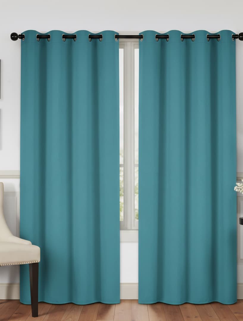 Cortinas (1panel) opacas de color verde azulado con ojales.