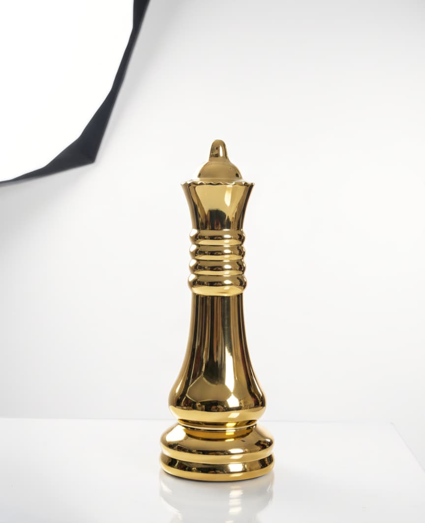 Decoración en forma de reina de ajedrez doradoDecoración en forma de reina de ajedrez dorado