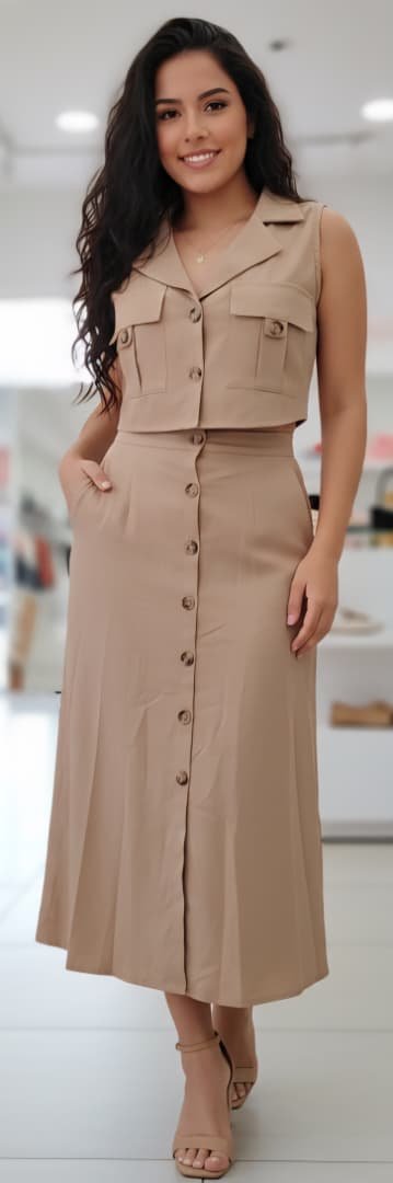 sdFalda maxi con abertura lateral carey beigexc