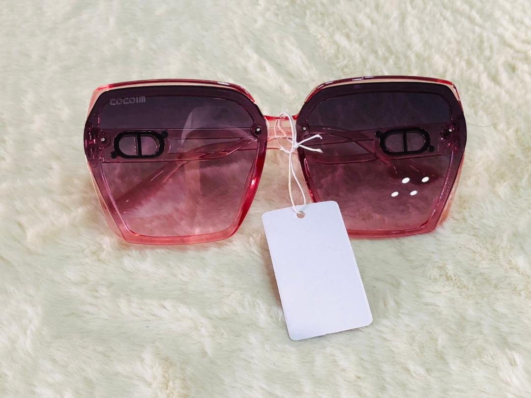 / Gafas de sol con montura de color rosa y diseño geométrico grande.