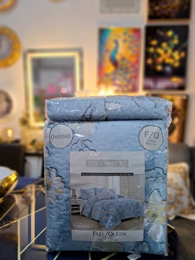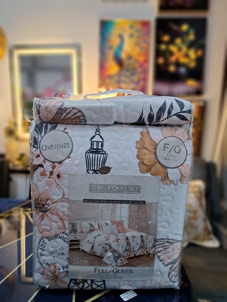 Juego de edredón de 5 piezas de la marca Claire, diseñado para camas tamaño Full/Queen.Juego de edredón de 5 piezas de la marca Claire, diseñado para camas tamaño Full/Queen.