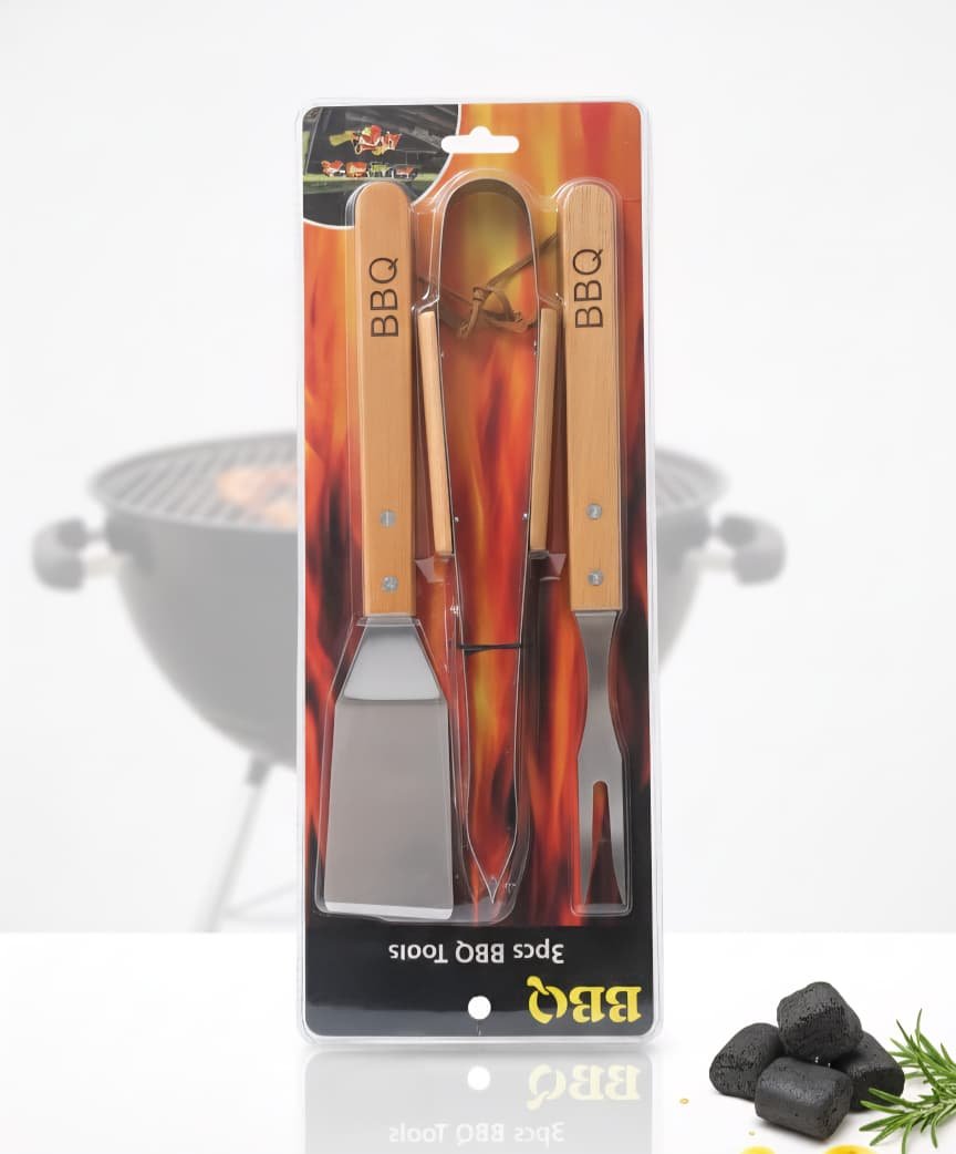 Juego de herramientas para barbacoa de 3 piezas.Juego de herramientas para barbacoa de 3 piezas.