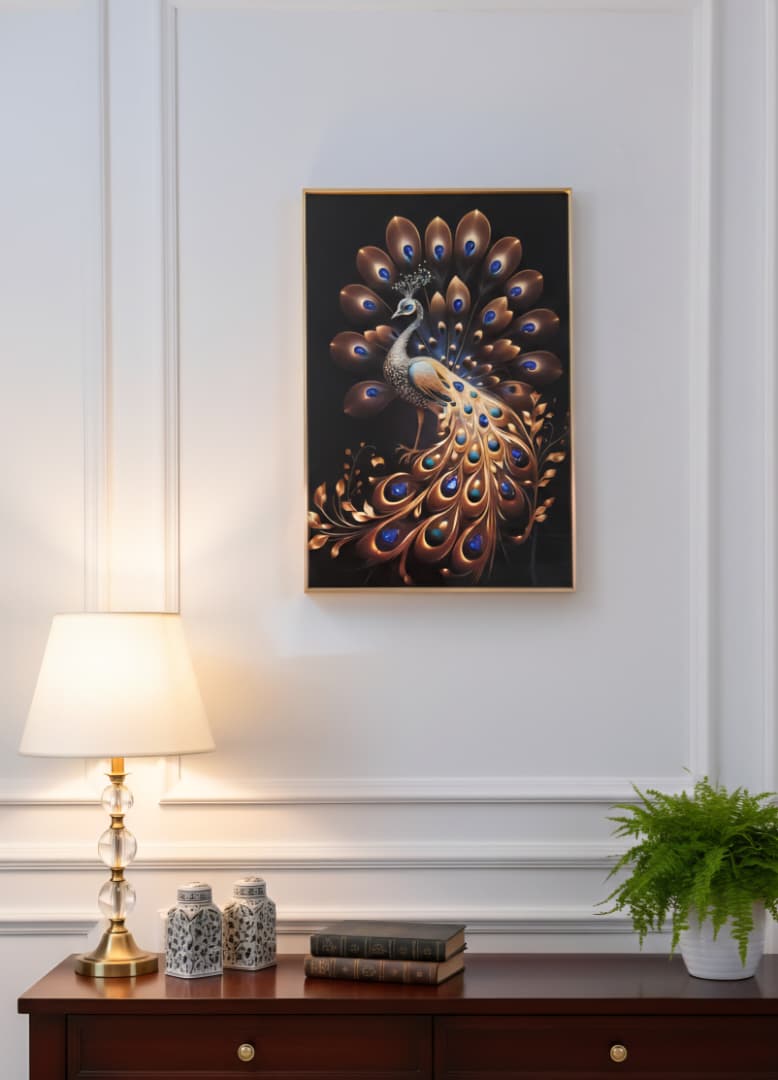 Sé el primero en valorar “Lienzo de pavo real con colores simétricos”
