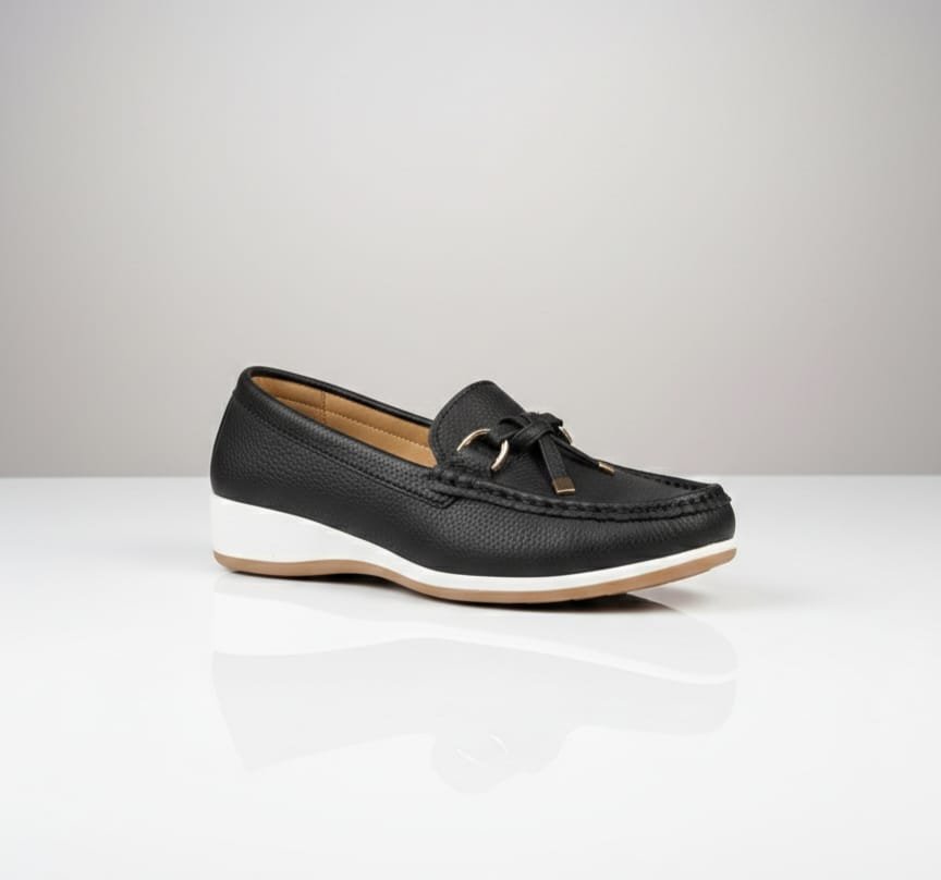 / Mocasines negros con zuelas blancas y beige