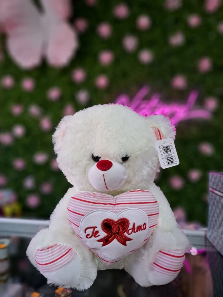 / Osito de peluche blanco de 10 pulgadas de alto que sostiene un corazón.