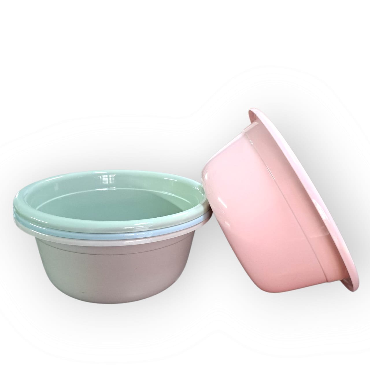 / Palangana de plástico redondas, ideales para múltiples usos domésticos como lavar platos o remojar ropa.