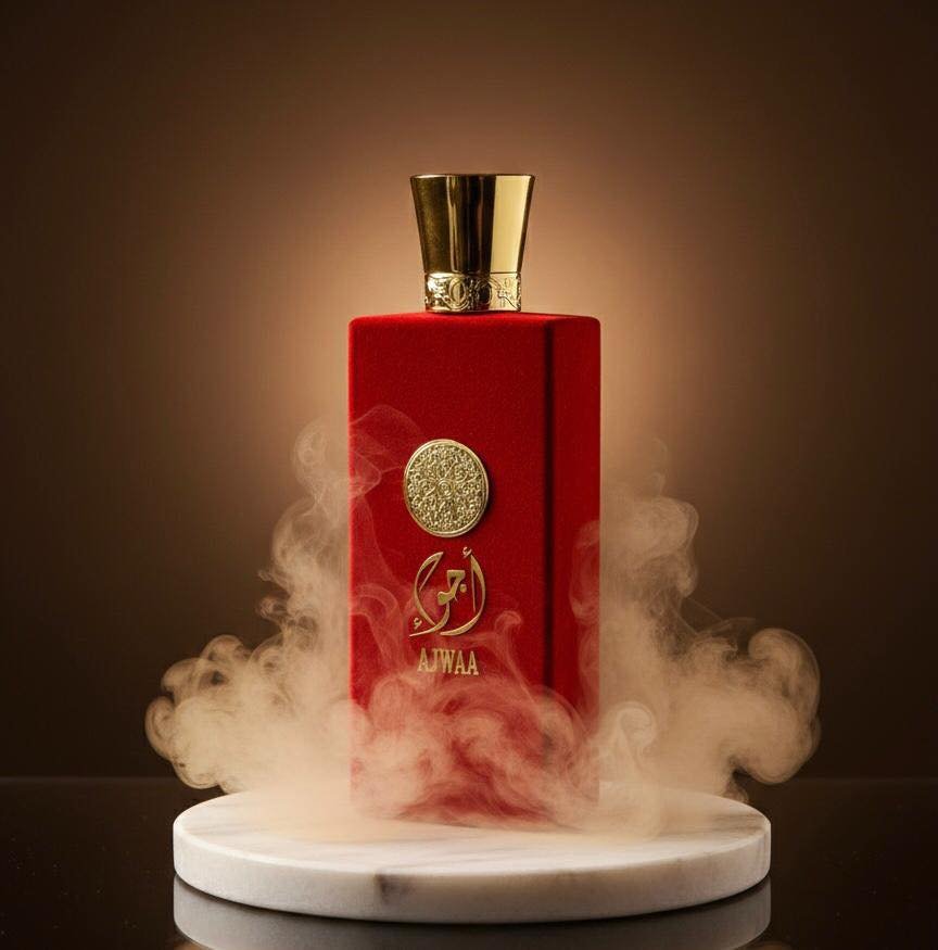 Perfume Ajwaa Murakaz Concentrated Red de la marca Nusuk, una fragancia floral frutal para mujeres con notas de grosellas negras, pera y ruibarbo.28. 000 CUP