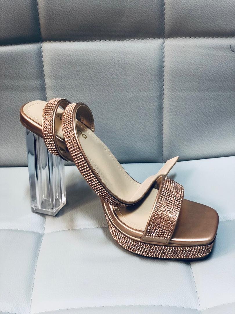 / Sandalia de tacón alto de plataforma con pedrería y tacón acrílico transparente