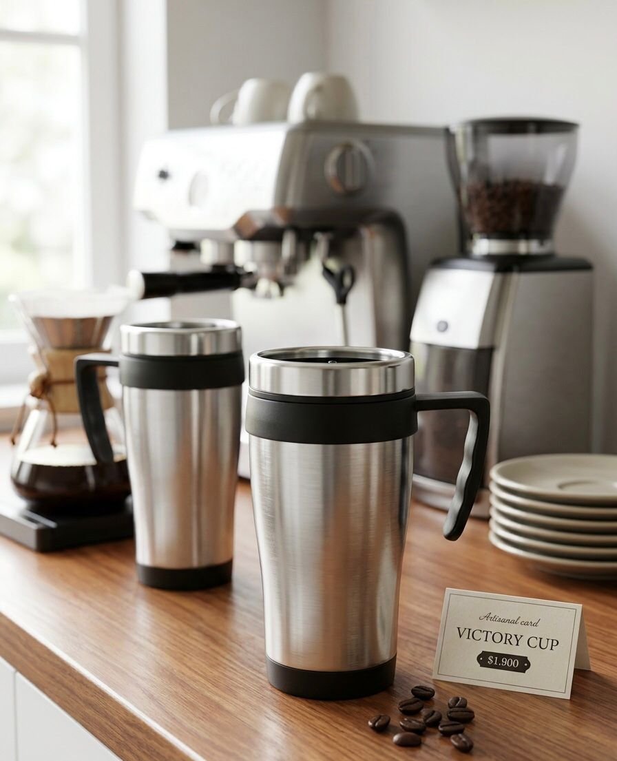 Termo Allan de doble pared, diseñado para mantener las bebidas calientes durante aproximadamente 6 horas y frías por 8 horas, con una capacidad de 525 ml y tapa de plástico con ranura.2. 500 CUP