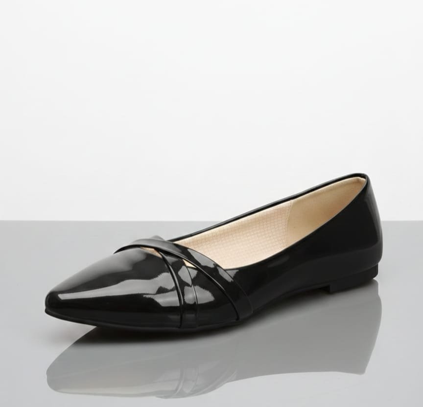 Zapatos planos de vestir para mujer con punta puntiaguda, diseño de correas cruzadas y ajuste de ancho especial.